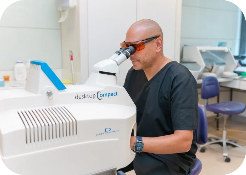 Un dispositif discret filme l’intérieur de la bouche en haute définition. Il permet au praticien de mieux visualiser les zones à traiter et d’expliquer clairement le plan de soin. Cet outil facilite le suivi et renforce la transparence avec le patient.